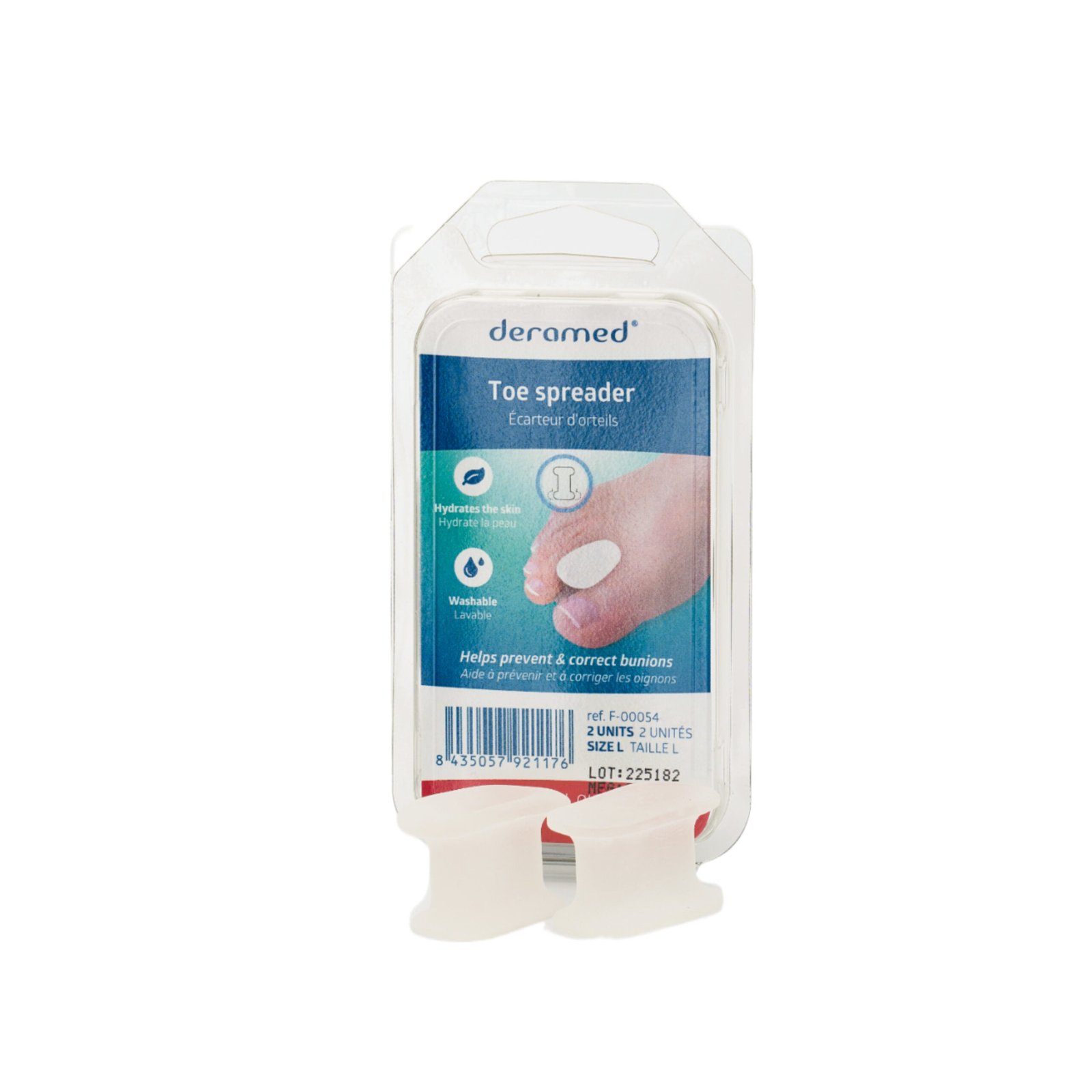 Atdala kājas pirmo un otro pirkstu, nodrošinot pārklājošos pirkstu pareizu stāvokli. Mazina berzi un spiedienu starp pirkstiem.